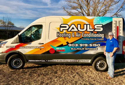 Paul's Heating & Air Conditioning, LLC 3496 Texas Highway 19 S. Sulphur Springs, TX 75482 903-919-5150 TACL B0064968E